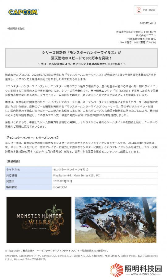 今日,卡普空官方發(fā)布公告,正式宣布《怪物獵人:荒野》在發(fā)售3天內(nèi),銷量達到了800萬。這是卡普空歷史上,最快達成這一成就的游戲,遠超以往的同系列作品,以及《生化危機》系列。