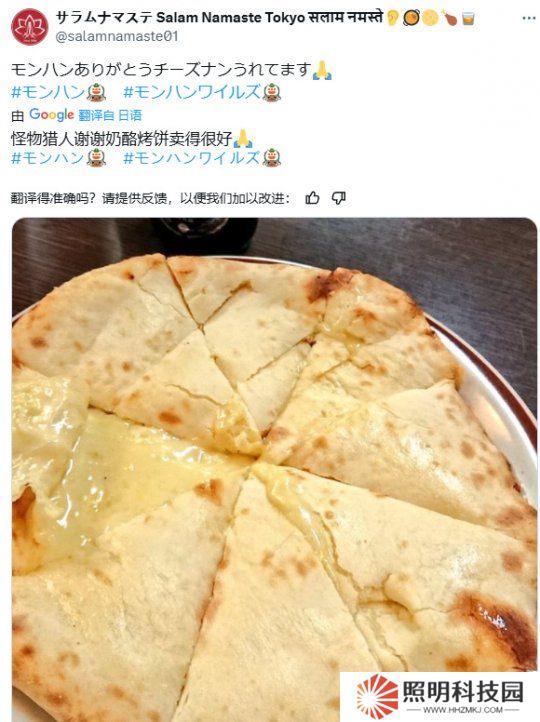 自《怪物獵人:荒野》發(fā)布以來,奶酪印度烤餅已經成為了時下日本最受追捧的食物,許多餐館關于奶酪印度烤餅的銷量都迎來了飆升。就連知名連鎖店Salam Namaste,也在社交媒體上感謝《怪物獵人:荒野》為他們帶來的熱度。