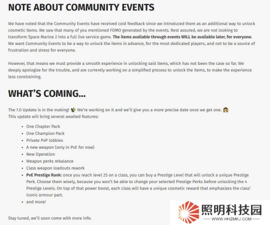 聯(lián)合聲明中提到:“我們看到你們中的許多人提到了活動(dòng)產(chǎn)生的FOMO(Fear of Missing Out,指一些玩家擔(dān)心錯(cuò)過(guò)限時(shí)提供的裝飾物品)。請(qǐng)放心,我們并不想將《戰(zhàn)錘40K:星際戰(zhàn)士2》變成一款完整的實(shí)時(shí)服務(wù)游戲,通過(guò)活動(dòng)獲得的物品將在之后提供給所有玩家?!?/p>