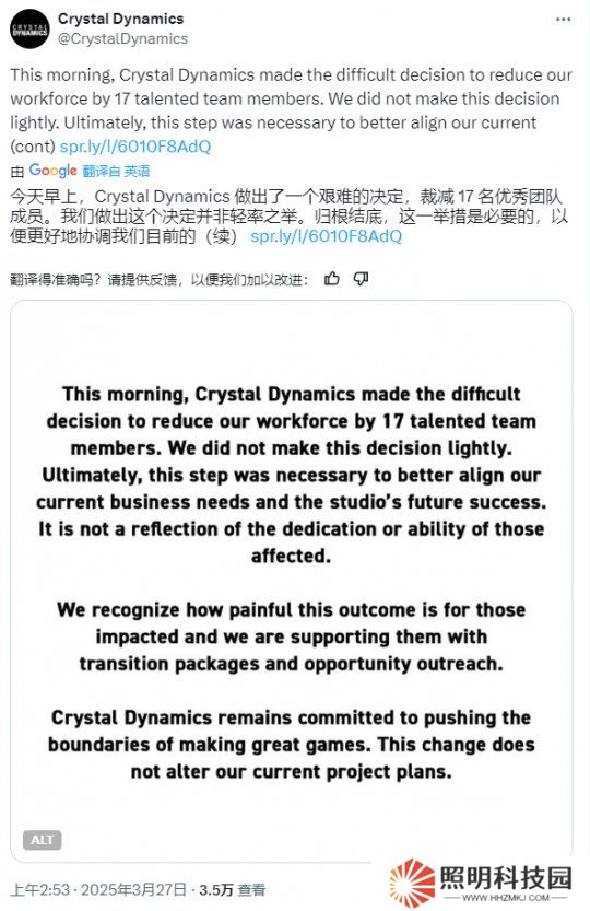 “今天早上,Crystal Dynamics 做出了一個(gè)艱難的決定,裁減 17名優(yōu)秀團(tuán)隊(duì)成員。我們做出這個(gè)決定并非輕率之舉。歸根結(jié)底,這一舉措是必要的,以便更好地協(xié)調(diào)我們目前的業(yè)務(wù)需求和未來(lái)的工作發(fā)展?!?/p>