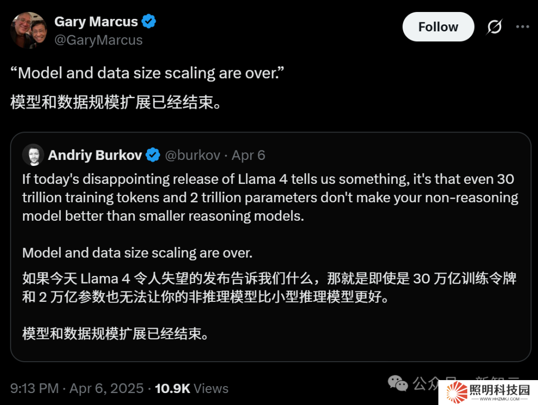 馬庫斯:Llama 4 的慘痛教訓(xùn)表明,Scaling 已經(jīng)結(jié)束