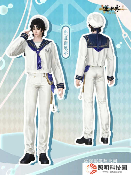 而水手領(lǐng)結(jié)、船錨形狀的金屬飾品,混搭上白色貝雷帽,不僅完美展現(xiàn)了春日時尚單品的清新,還兼具了酷颯感,凸顯角色的少年感。青春氣息如此濃郁的水手制服,也難怪玩家瘋狂點(diǎn)贊,忍不住夸夸官方:有這樣帥氣的男款時裝進(jìn)入大宋,《逆水寒》美術(shù)制作組你做什么都會成功的。