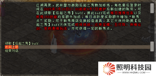 1、3月18日后未登錄新服【騰蛇踏淵】的大俠或活動開始后創(chuàng)建的新角色,等級≥135級時可在江湖接引使處領(lǐng)取【后起之秀】BUFF享受50%技能經(jīng)驗加成與雙倍俠義賞獎勵,領(lǐng)取每日活躍獎勵時候?qū)@得新秀令。