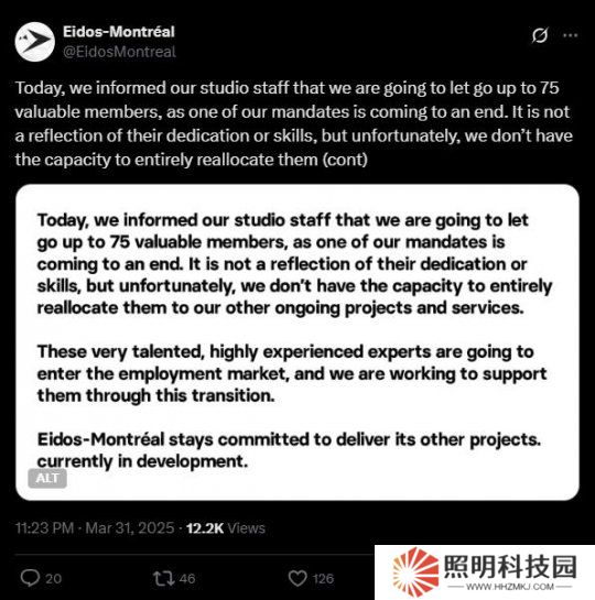 去年Eidos-Montréal就已裁員97人,而在最近的聲明中Eidos-Montréal表示:“今天,我們通知工作室成員,我們將解雇多達75名寶貴的員工。因為我們的一項任務即將結束。這并不是對他們奉獻精神或技能的反映,但不幸的是,我們沒有能力將他們完全重新分配到我們正在進行的其他項目和服務中。”