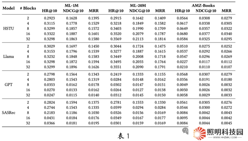 復(fù)現(xiàn)并研究不同架構(gòu)的生成式推薦模型及其擴展定律;通過消融實驗和參數(shù)分析,解析 HSTU 的擴展定律來源,并賦予 SASRec 以可擴展性;