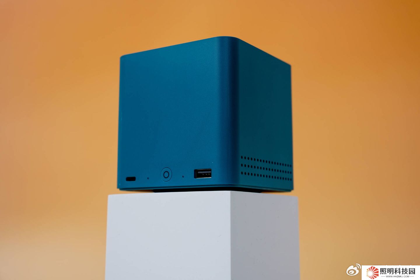 這款小主機(jī)采用了內(nèi)置電源設(shè)計,尺寸為 99×99×98.3mm,重約 730 克,提供珍珠白、孔雀藍(lán)、暗夜灰三種配色。