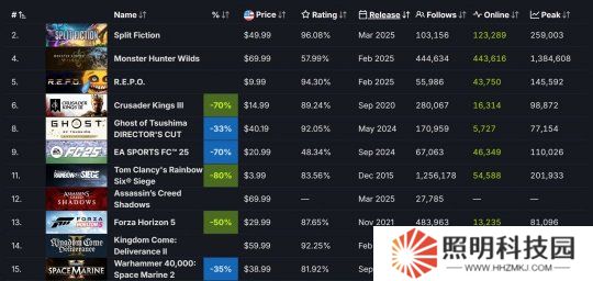 在Steam 上,《刺客信條:影》也已經(jīng)是Steam上最暢銷的游戲之一。根據(jù)SteamDB,過濾掉免費(fèi)游戲部分,《刺客信條:影》目前排名第8。