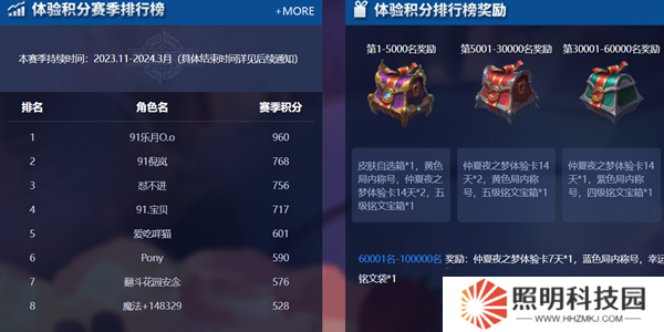 1、體驗積分賽季排行榜每日10:00進行刷新;