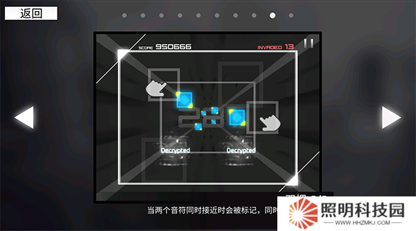 3、游戲采用四面+空間下落式節(jié)奏玩法,玩家需點擊下落的音塊。
