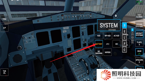 4、進入到飛行器的第一人稱模式當(dāng)中,這里面存在著各種按鍵,每一種都會具有自己的功能,右側(cè)第一個是警報系統(tǒng),第二個是地面系統(tǒng),第三個是貨物,第四個是油量。