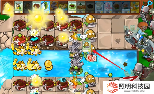 1、玩家們首先需要將促銷堅果的消耗降到0點,然后種植一個促銷堅果。