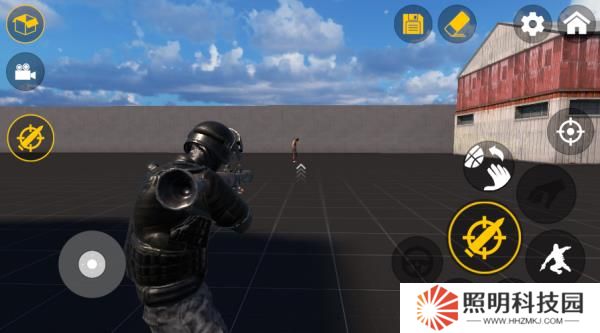 4、進入到場景內(nèi)后玩家們滑動輪盤控制角色移動,點擊右側(cè)進行攻擊跳躍蹲下等操作。