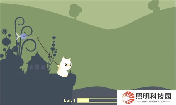 1、玩家們進(jìn)入關(guān)卡之后,首先需要操控自己的小貓角色來(lái)進(jìn)行拋竿的動(dòng)作。