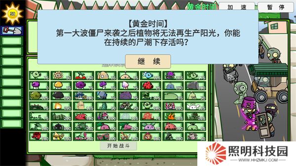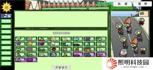4、在界面的右側(cè)可以看到僵尸的類型,接著玩家們選擇需要出場的植物,完成后點(diǎn)擊開始戰(zhàn)斗。
