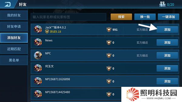 3、點擊左側(cè)第三個添加好友的按鈕,玩家們將能夠在這里對隨機的玩家進行添加,或者主動的搜索指定玩家進行添加。