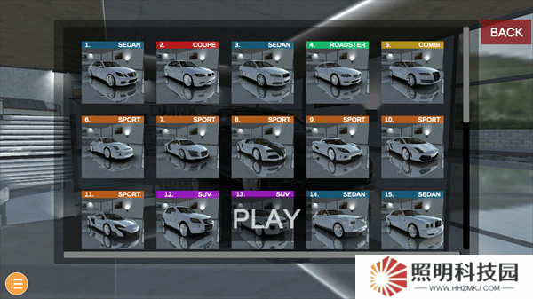 2、點(diǎn)擊左上角Car selection 可以選擇喜歡的車輛。