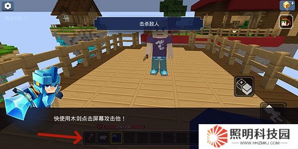 5、當我們遇到敵人是,點擊木劍進行裝備,點擊屏幕攻擊敵人。