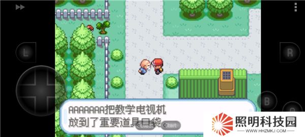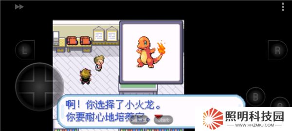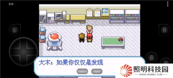 3、首先下樓和媽媽對話,然后出門直奔上面的草叢,在快進入草叢時,大木博士出現(xiàn)了,把主角帶到他的研究所,然后讓我們從右邊的桌上的精靈球中選擇一個作為初始的怪獸。