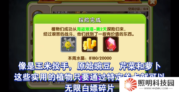 在日?;顒?dòng)之后,玩家們還可以派出植物來(lái)進(jìn)行探險(xiǎn),通過(guò)探險(xiǎn)將能夠獲取到植物的碎片,以此合成全新的植物。