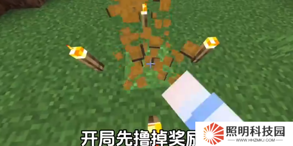 1.開局先擼掉獎勵箱,打掉4根火把后挖些木頭,快速打開背包分解木板做出工作臺,前期需要快速發(fā)育,因此要盡快帶走工作臺。