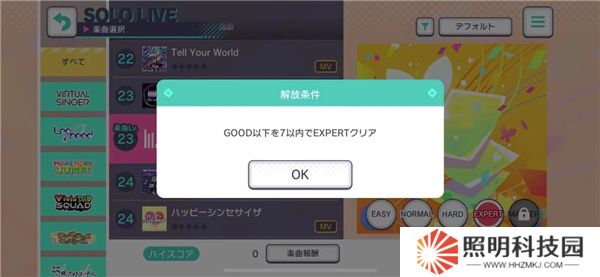 4、噩夢模式是處于鎖定狀態(tài)的,需要玩家完成指定的任務(wù)才能開啟,在專家模式內(nèi)該歌曲的good次數(shù)少于7次,噩夢級別的難度模式才能讓玩家參與。