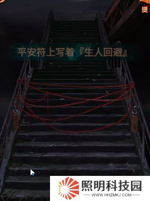 12、來到紅繩阻擋的樓梯前,將獲得的平安符掛在左側缺失的位置。