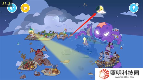 3、玩家們點(diǎn)擊畫面右上角的月亮即可切換白天和黑夜。