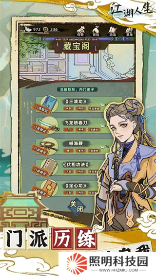 2、通過(guò)各種方法可以獲取到各種武學(xué)以及心法,讓角色的實(shí)力得到一定的成長(zhǎng)。