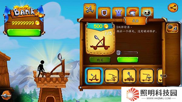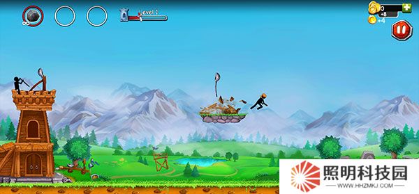 4、通過滑動(dòng)屏幕來控制彈弓和選擇的張力,精確計(jì)算投擲石塊的角度進(jìn)行發(fā)射。