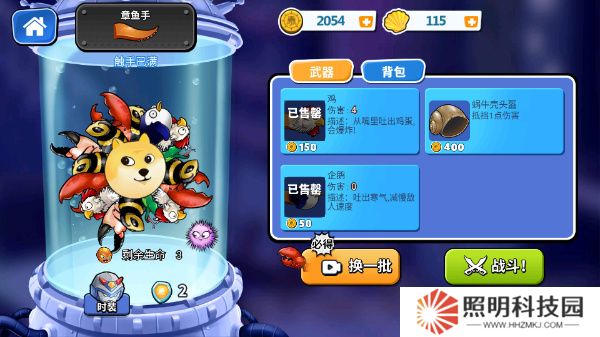 4.你還可以為自己的章魚裝備各種武器道具,從而增加角色全方位的能力。