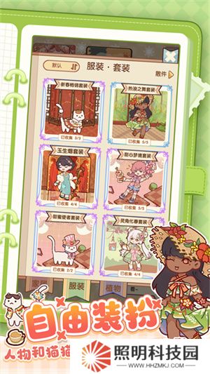 2.自由裝扮,為自己的角色進(jìn)行更換衣服與配飾,還可與自己的寵物貓咪一同更換同款穿搭,風(fēng)格多樣任意挑選。