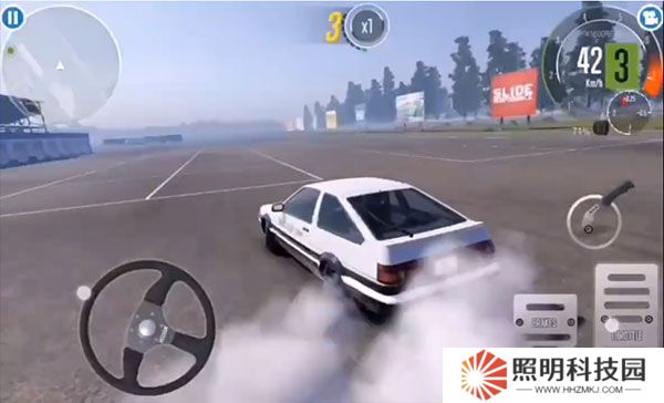 4、重點(diǎn)是把握切入角度還有剎車(chē)油門(mén)的時(shí)機(jī),就能夠完成漂移了。