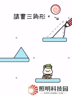 1.如下圖,在上方一筆畫出類似的三角形,讓糖果掉下來在小倉鼠懷里。