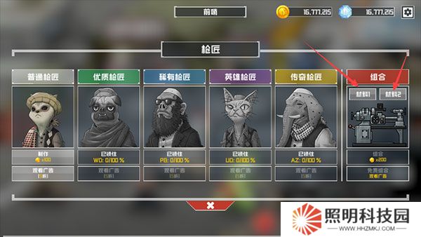 1、進入到游戲后點擊進入槍匠界面,將需要組合的武器放入對應的材料。