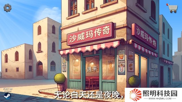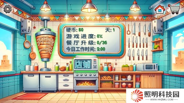 2、然后玩家們就會(huì)進(jìn)入到沙威瑪?shù)赇伒慕缑娈?dāng)中,你可以點(diǎn)擊店鋪開(kāi)始進(jìn)行經(jīng)營(yíng),或者點(diǎn)擊右上角的購(gòu)物車圖標(biāo)來(lái)購(gòu)買更多的設(shè)備。