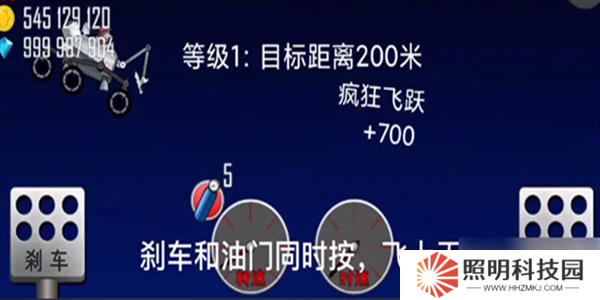 第三種:選擇使用登月車(chē),然后在地圖中利用車(chē)輛的特性將車(chē)頭翹起來(lái),以此來(lái)一直觸發(fā)獲得單輪特技金幣。