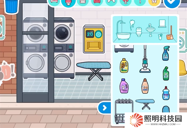 1、在商業(yè)街當(dāng)中會存在著洗衣店的場景,你將能夠控制自己的角色在這里進行衣物的清潔工作。