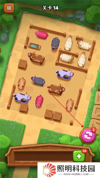 1.主要的玩法就是通過點擊來讓農場內部的各種動物們都走出區(qū)域,由此帶來趣味十足的消除冒險。