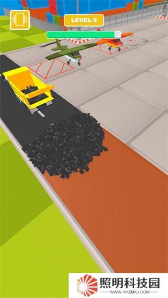 2、玩家們長按屏幕控制推車將路快平鋪在凹槽中。