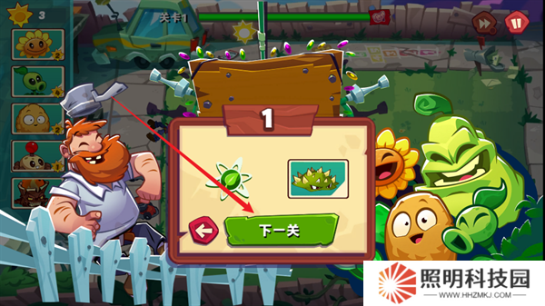 8、將所有的僵尸都擊敗之后,你就能夠獲取到關(guān)卡的勝利,得到相應(yīng)的獎勵,還可以點(diǎn)擊下一關(guān)來繼續(xù)進(jìn)行游玩。