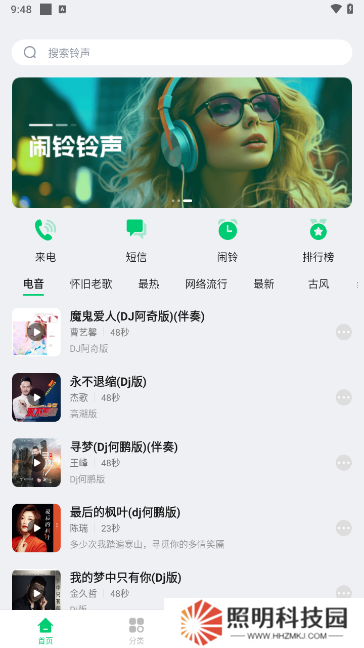 免費鈴聲秀永久免費版使用教程:進入app以后,就可以看到免費鈴聲了
