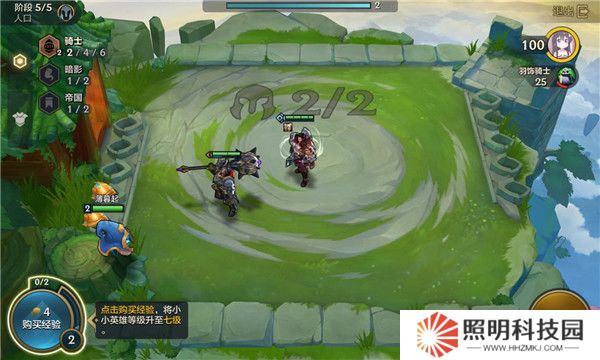 4、玩家們點(diǎn)擊左下角的購買經(jīng)驗按鍵,點(diǎn)擊購買經(jīng)驗提升等級,增加了上陣的英雄數(shù)量和高級英雄的刷新概率。
