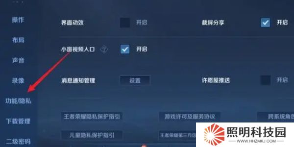 2、在設置界面當中選擇【功能/隱私】,并進入到對應的界面之中。