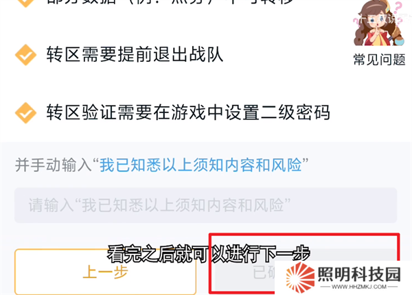 4、如果確認轉區(qū)之后,就會跳轉一個轉區(qū)說明,注意點券、游戲好友、親密關系、戰(zhàn)隊以及小隊都是不可以轉移的。