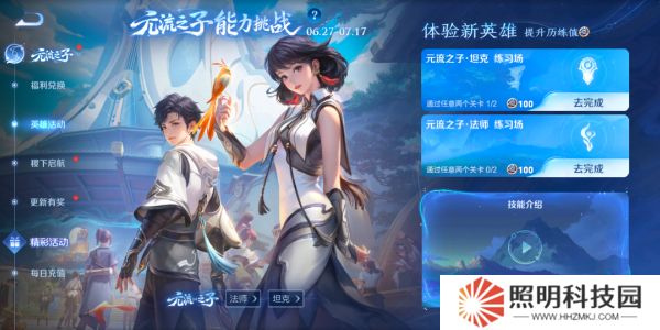 2、進入王者榮耀活動界面后點擊活動【元流之子】出現下拉菜單,我們進入【英雄活動】界面,完成相關的任務挑戰(zhàn)獲得歷練值就可以解鎖新英雄元流之子。