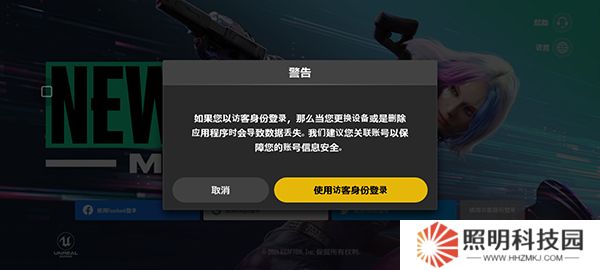 2、這里以游客登陸為例,點擊游客登陸后,在彈出的警告中點擊使用訪客身份登陸即可。