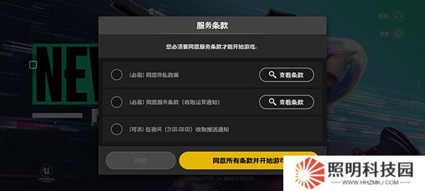 3、接著玩家們勾選服務(wù)條款并點擊同意。