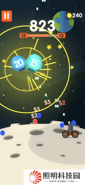 2、關(guān)卡之中你需要移動自己的跑車攻擊下落的各種石塊,石塊上面的數(shù)字就是擊碎所需要的攻擊次數(shù),玩家們應(yīng)該根據(jù)實際的情況來選擇合適的石塊進行攻擊。