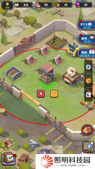 3、接著玩家們點擊場景內(nèi)的空地,在點擊黃色圖標(biāo)即可進行建造。