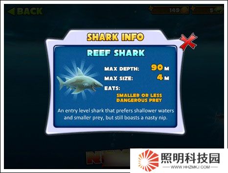 這條鯊魚的速度和下潛深度有所提高,能多吃兩種魚類,但需要25顆鉆石,性價比不高。